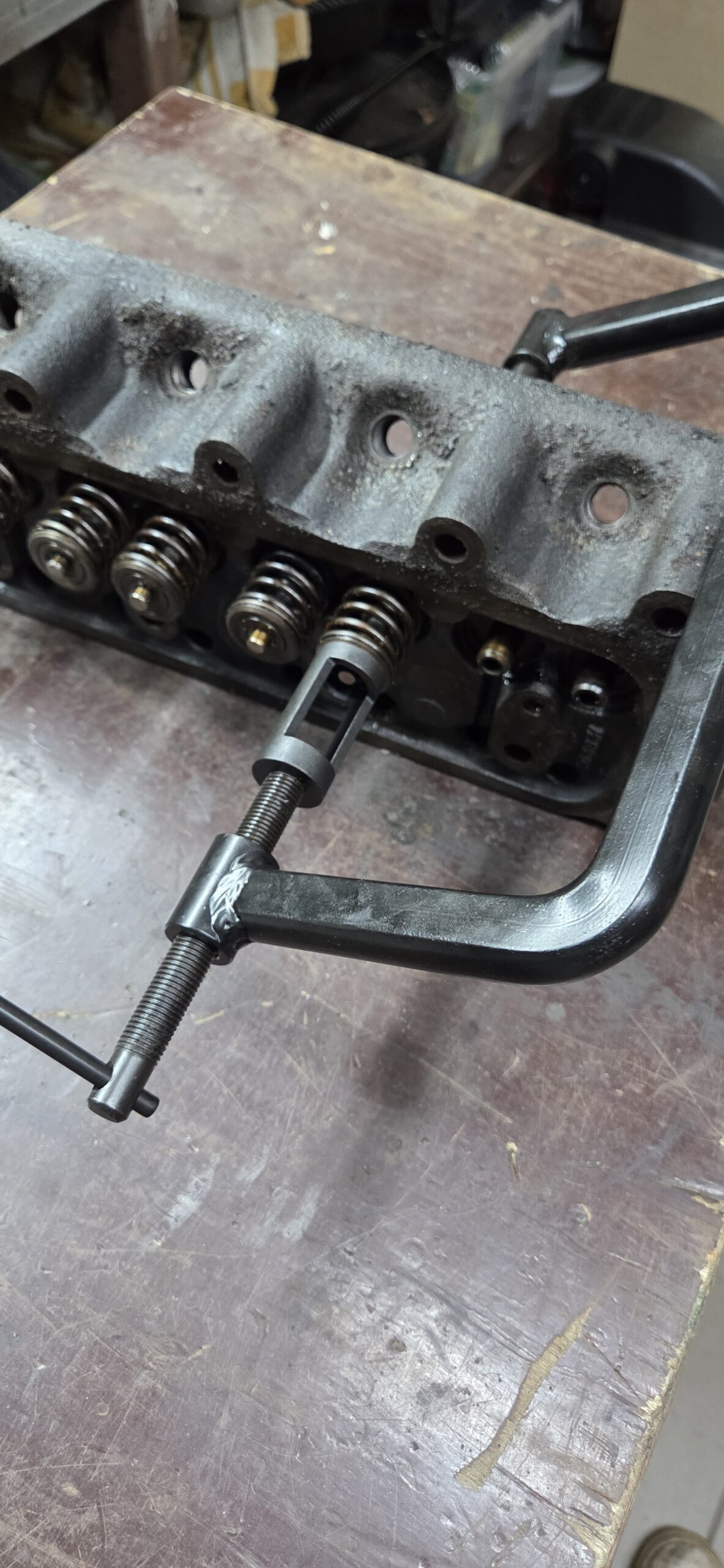 The cylinder head is off and we are now removing the valves to inspect their condition. This critical step lets us assess the valve seats and guides for wear, ensuring we can guarantee a perfect, gas-tight seal for maximum compression. Replacing worn components now is key to the reliability and power of this engine’s future performance.